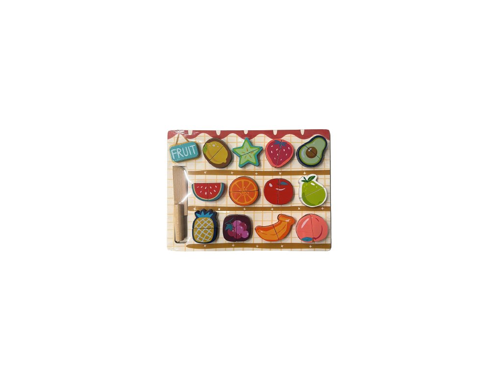 Drevné ovocie je skvelým doplnkom do detských kuchyniek i obchodíkov. S krájacím ovocím sa deti môžu pustiť do varenia, prípravy raňajok alebo desiaty pre svoje obľúbené hračky, kamarátov aj rodičov. 12 druhov ovocia, ktoré deti poznajú zo záhradky, z domova alebo z obchodu, je rozdelených na polovice. Stačí vziať drevený nožík do rúčky av správnom mieste ovocia rozkrojiť. Súčasťou balenia je krásna krájacia doštička (doštička) aj drevený nôž. Krájacie ovocie je obľúbenou detskou hračkou, vďaka ktorej si deti môžu vyskúšať krájanie nožom bezpečným, detským, spôsobom.