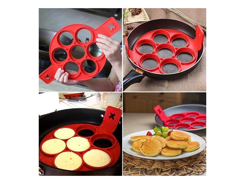 Forma má 7 otvorov, každý s priemerom 7cm. Zhotovená je z kvalitného 100% silikónu, ktorý je bez zápachu a chuti s tepelnou odolnosťou od - 60 ° C až do +230 ° C. Forma sa jednoducho umýva teplou vodou alebo v umývačke riadu.