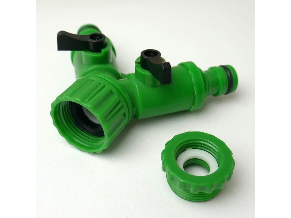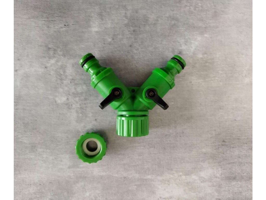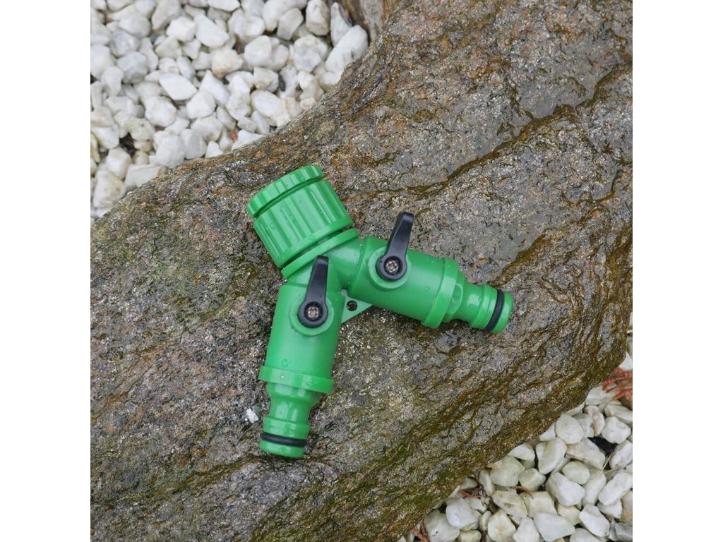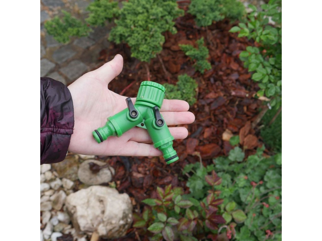 Plastový dvojcestný ventil využijete na pripojenie dvoch hadíc. Nemusíte tak už hadice po rôznom prepájať. Zapojte ventil na záhradný kohútik vonku a nasaďte obe hadice. Ventil môžete používať na jednu hadicu a druhý ventil používať napríklad na napúšťanie kanvy alebo vedra. Zapínanie a vypínanie prívodu vody je pomocou malých čiernych páčok.